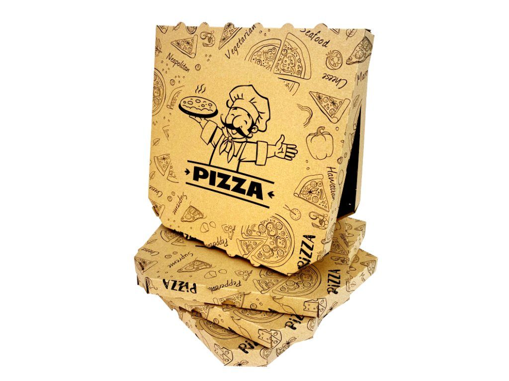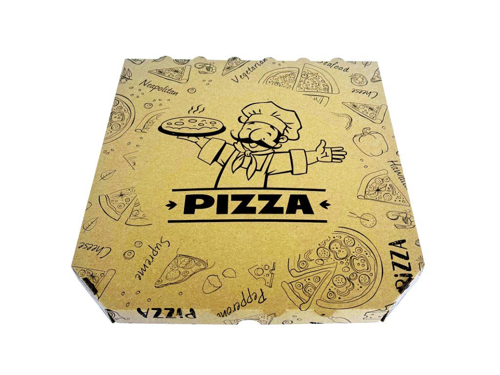 Krabice na pizzu 32x32x3cm, univerzální potisk, hnědo - hnědá 50ks